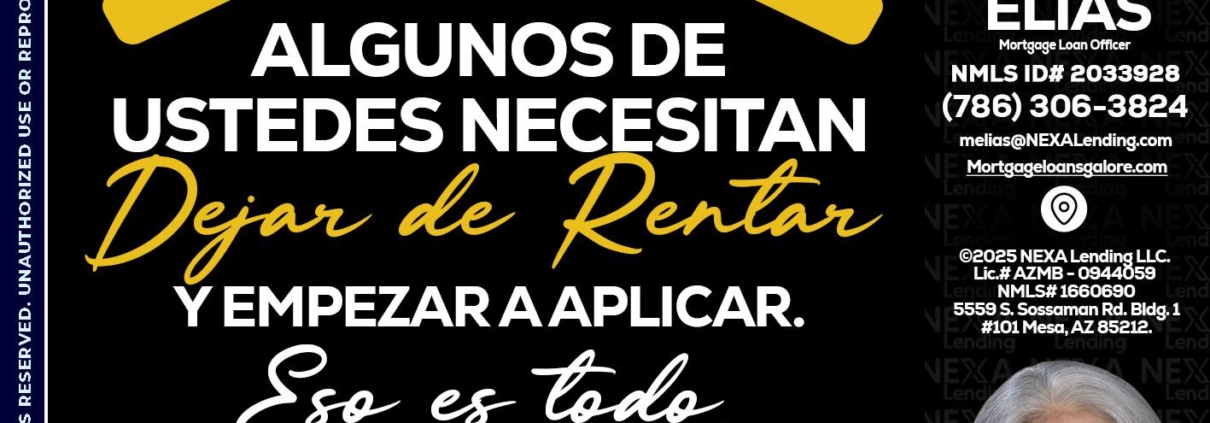 algunos - Marlen Elias -Mortgage Loan OfficerHi, my name is Marlen Elias. I’m a Loan Officer with NEXA Mortgage LLC., offering personalized mortgage solutions, fast customized quotes, great rates and service with integrity.