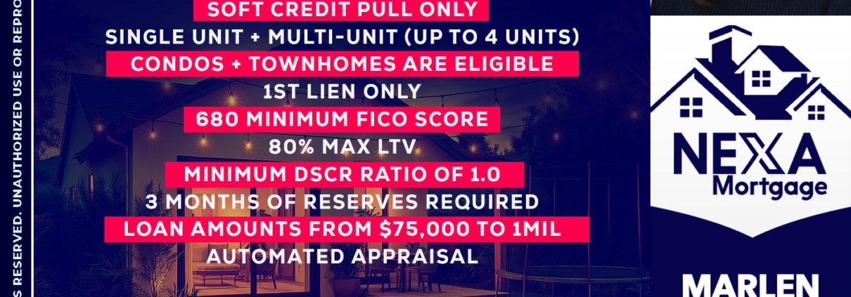 Hi, my name is Marlen Elias. I’m a Loan Officer with NEXA Mortgage LLC., offering personalized mortgage solutions, fast customized quotes, great rates and service with integrity.