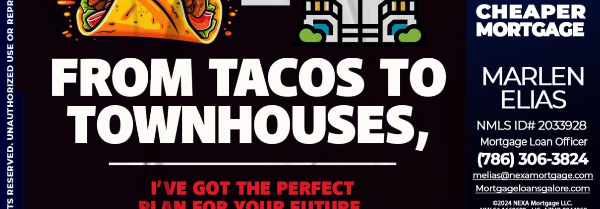 from tacos to - Marlen Elias -Mortgage Loan OfficerHi, my name is Marlen Elias. I’m a Loan Officer with NEXA Mortgage LLC., offering personalized mortgage solutions, fast customized quotes, great rates and service with integrity.