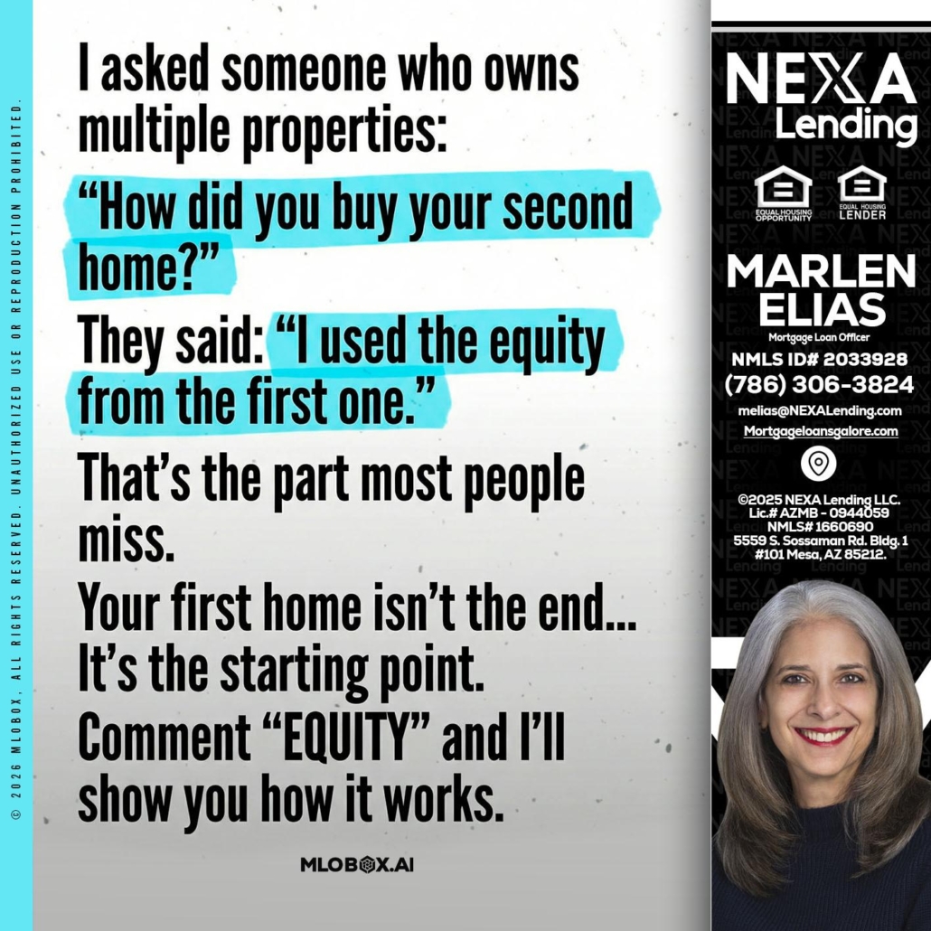 Hi, my name is Marlen Elias. I’m a Loan Officer with NEXA Lending LLC., offering personalized mortgage solutions, fast customized quotes, great rates and service with integrity.