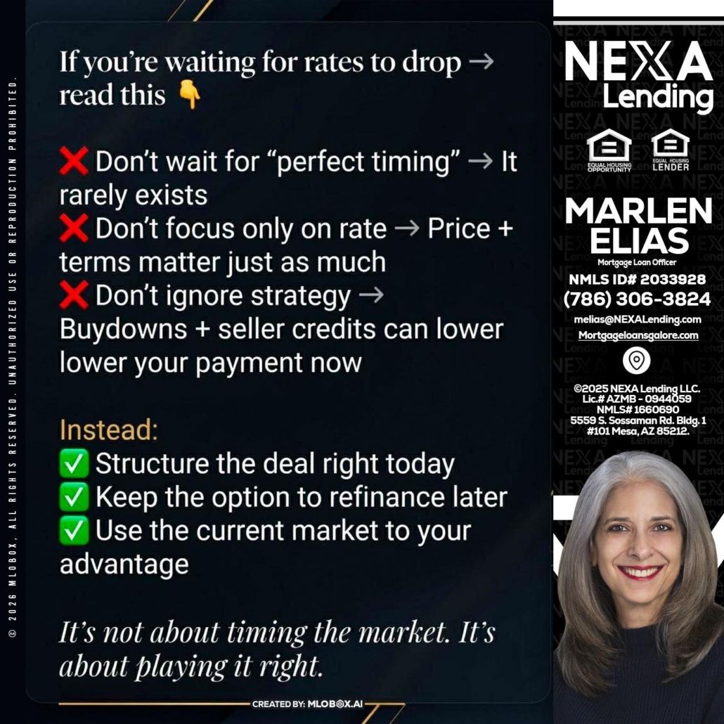 Hi, my name is Marlen Elias. I’m a Loan Officer with NEXA Lending LLC., offering personalized mortgage solutions, fast customized quotes, great rates and service with integrity.