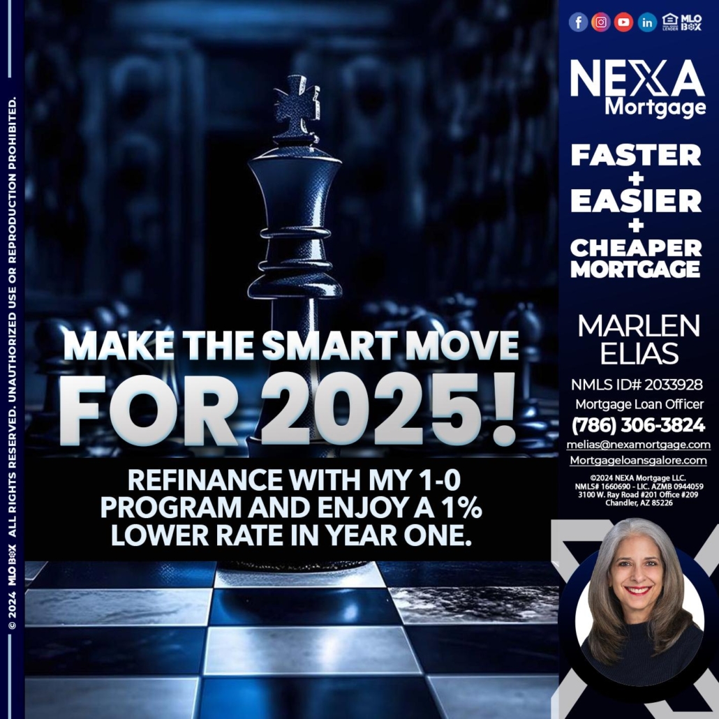 MAKE THE SMART MOVE - Marlen Elias -Mortgage Loan OfficerHi, my name is Marlen Elias. I’m a Loan Officer with NEXA Mortgage LLC., offering personalized mortgage solutions, fast customized quotes, great rates and service with integrity.