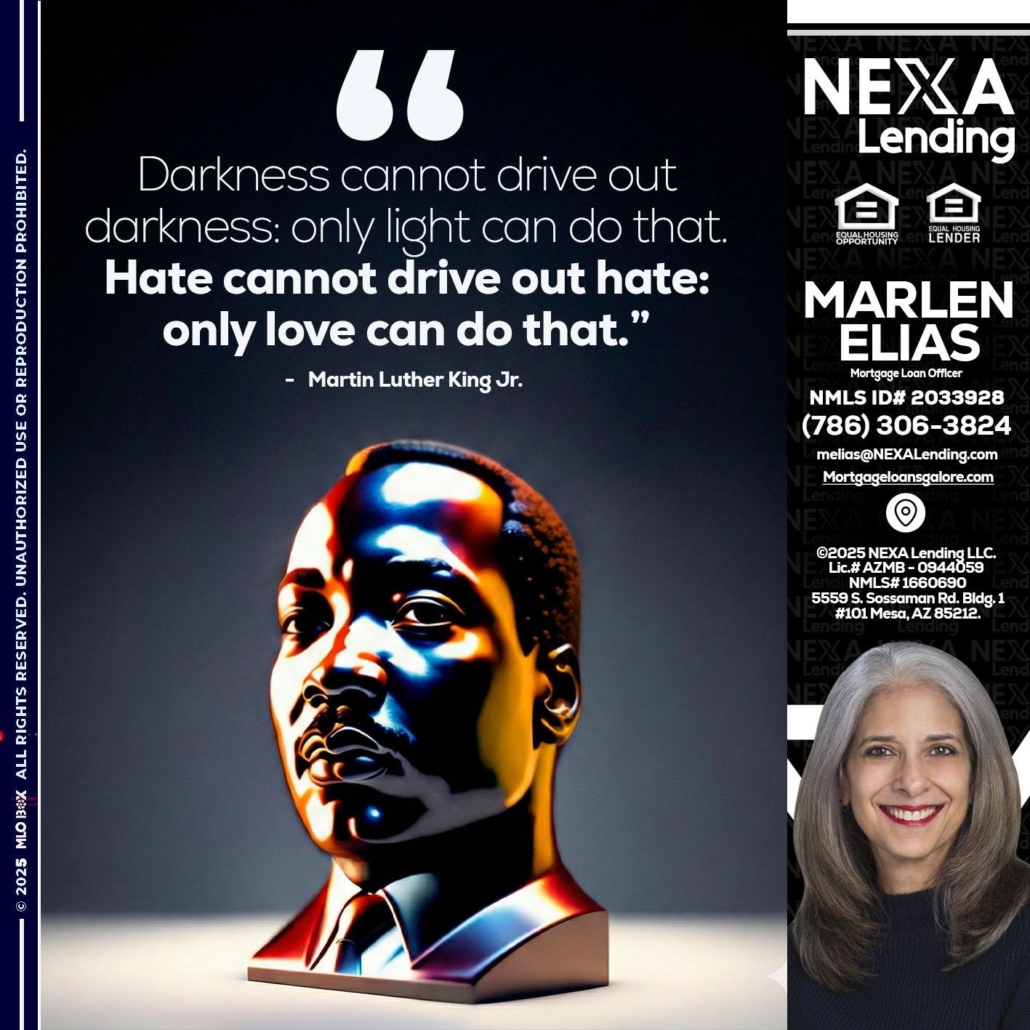 MLK 2026 - Marlen Elias -Mortgage Loan OfficerHi, my name is Marlen Elias. I’m a Loan Officer with NEXA Lending LLC., offering personalized mortgage solutions, fast customized quotes, great rates and service with integrity.