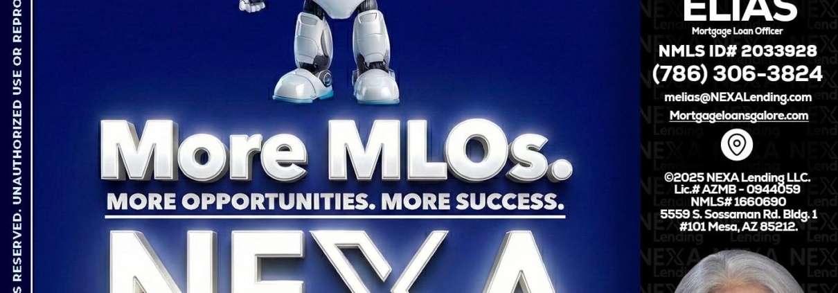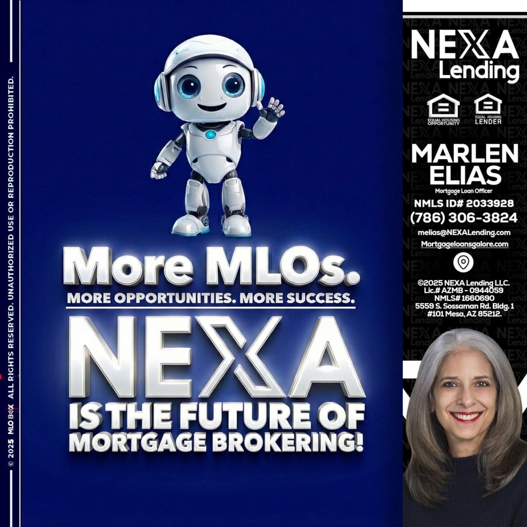 MORE MLOs - Marlen Elias -Mortgage Loan OfficerHi, my name is Marlen Elias. I’m a Loan Officer with NEXA Lending LLC., offering personalized mortgage solutions, fast customized quotes, great rates and service with integrity.