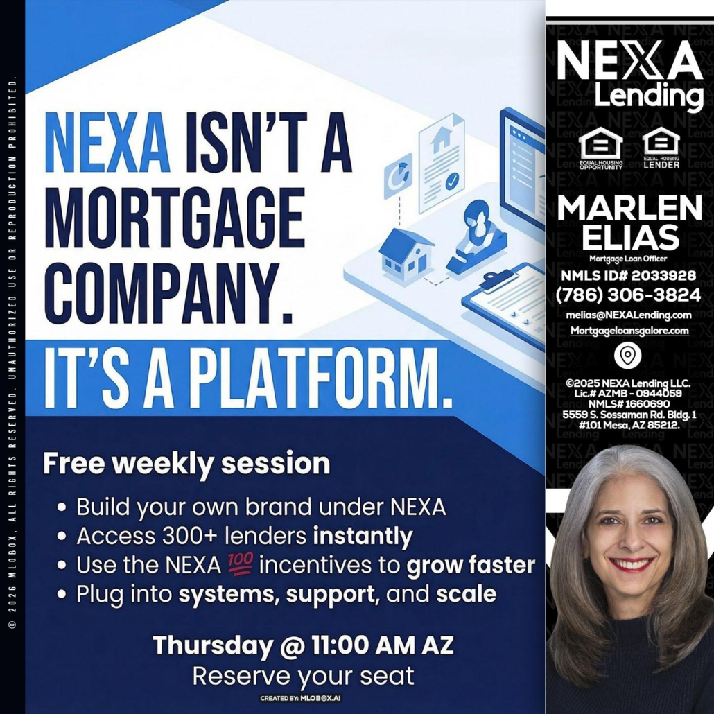 NEXA ISNT - Marlen Elias -Mortgage Loan OfficerHi, my name is Marlen Elias. I’m a Loan Officer with NEXA Lending LLC., offering personalized mortgage solutions, fast customized quotes, great rates and service with integrity.