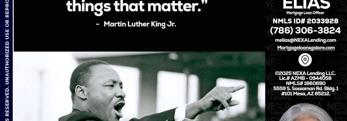 our lives MLK DAY - Marlen Elias -Mortgage Loan OfficerHi, my name is Marlen Elias. I’m a Loan Officer with NEXA Lending LLC., offering personalized mortgage solutions, fast customized quotes, great rates and service with integrity.