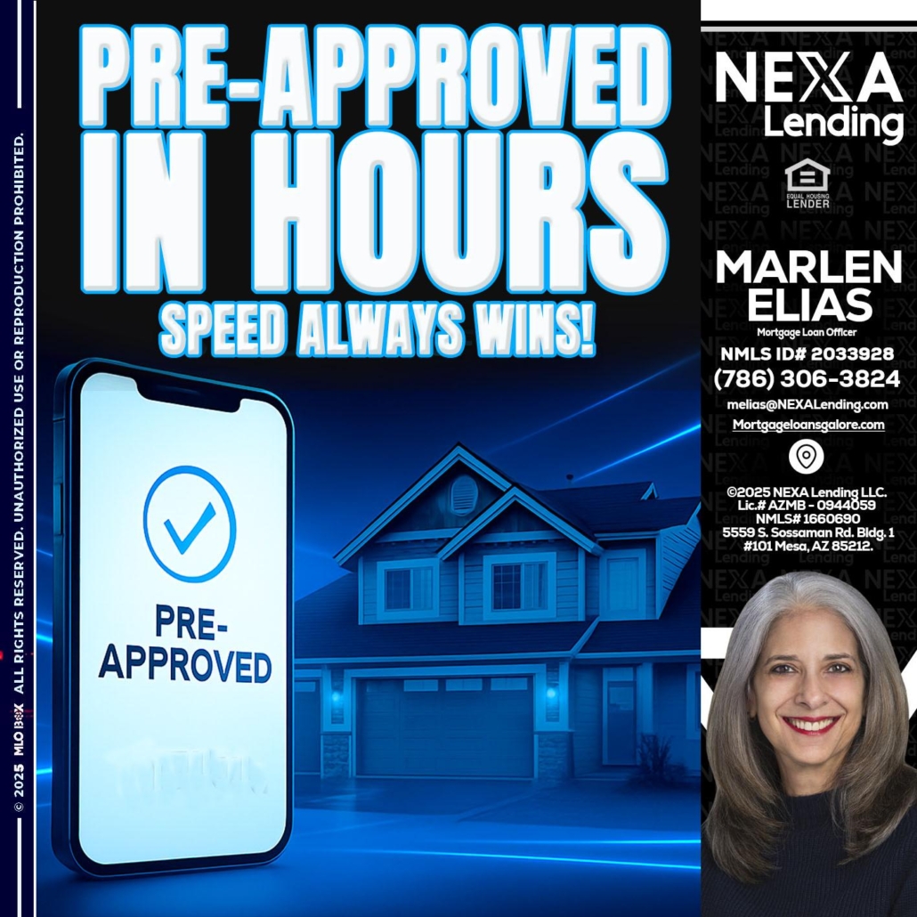 PRE - Marlen Elias -Mortgage Loan OfficerHi, my name is Marlen Elias. I’m a Loan Officer with NEXA Mortgage LLC., offering personalized mortgage solutions, fast customized quotes, great rates and service with integrity.