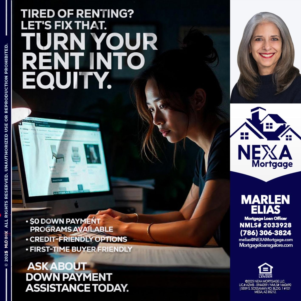 Hi, my name is Marlen Elias. I’m a Loan Officer with NEXA Mortgage LLC., offering personalized mortgage solutions, fast customized quotes, great rates and service with integrity.