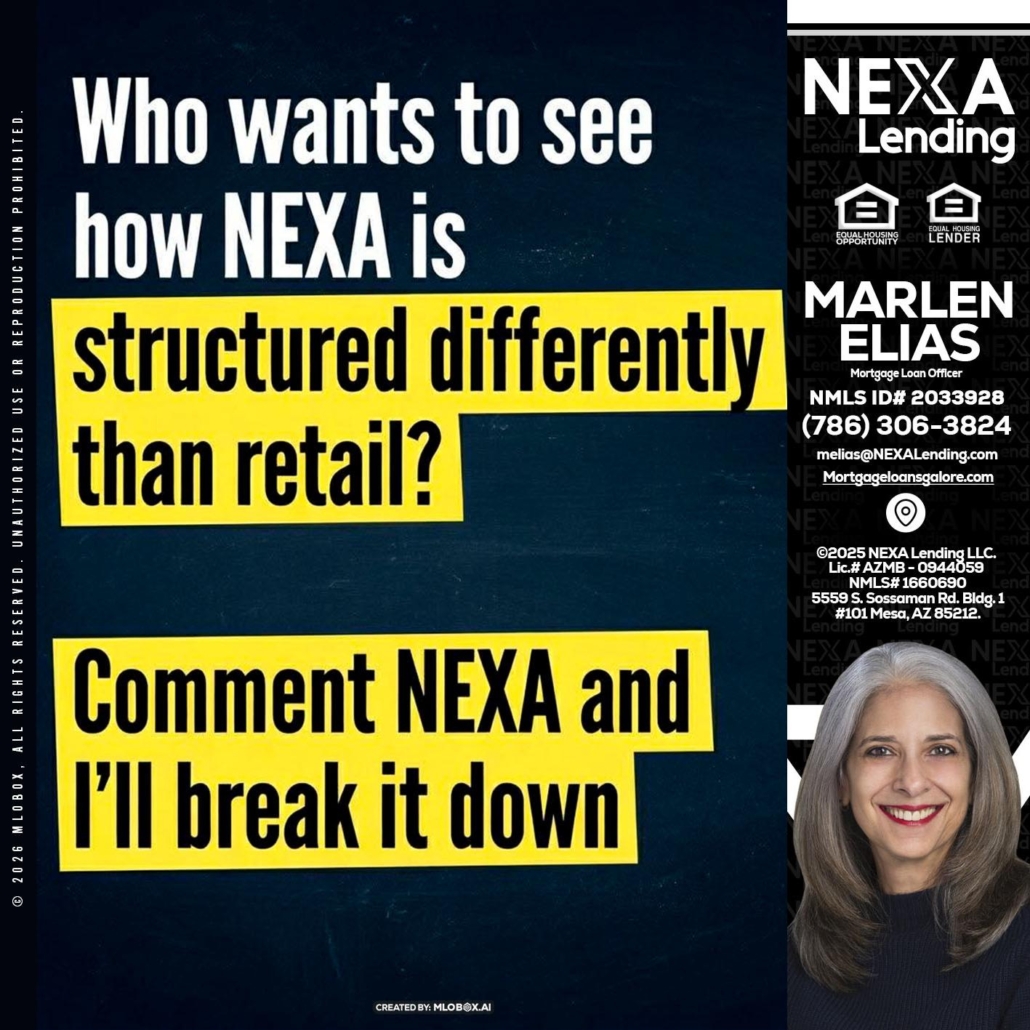 Hi, my name is Marlen Elias. I’m a Loan Officer with NEXA Lending LLC., offering personalized mortgage solutions, fast customized quotes, great rates and service with integrity.